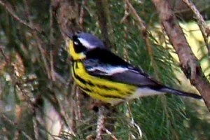 Northern Parula Warbler (top) with Myrtle Yellow-rumped Warbler (bottom)